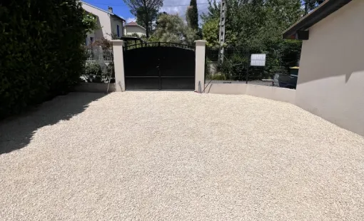 Réalisation d'une cour en gravier sur dalle alvéolé à Tassin-la-Demi-Lune