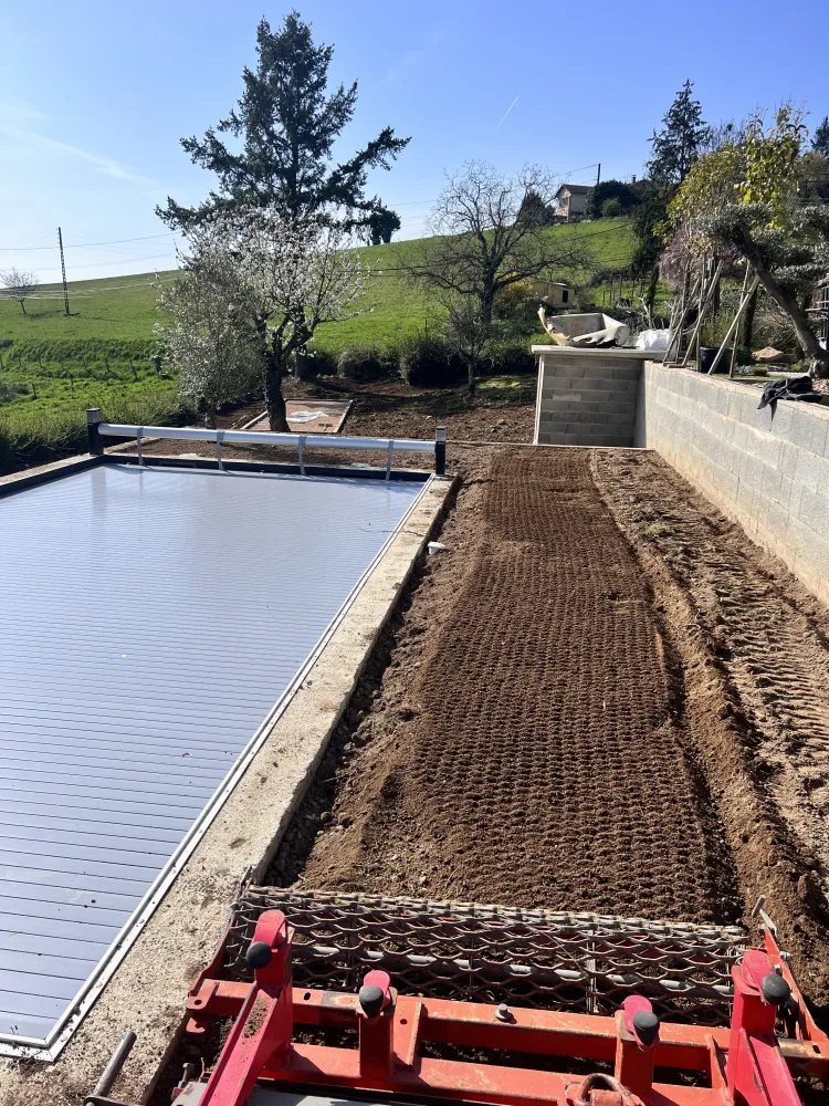 La création de pelouse a permis de structurer l’espace et d’apporter une zone verte propice à la détente. Après un travail de nivellement et de préparation du sol, la pelouse offre aujourd’hui un rendu soigné, naturel et durable, parfaitement intégré à l’aménagement extérieur.